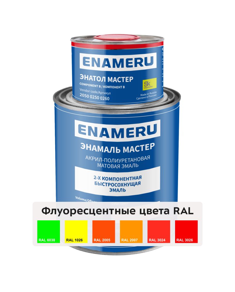 Энамеру, краска матовая 2К Энамаль Мастер, 1 кг, Флуоресцентные цвета RAL