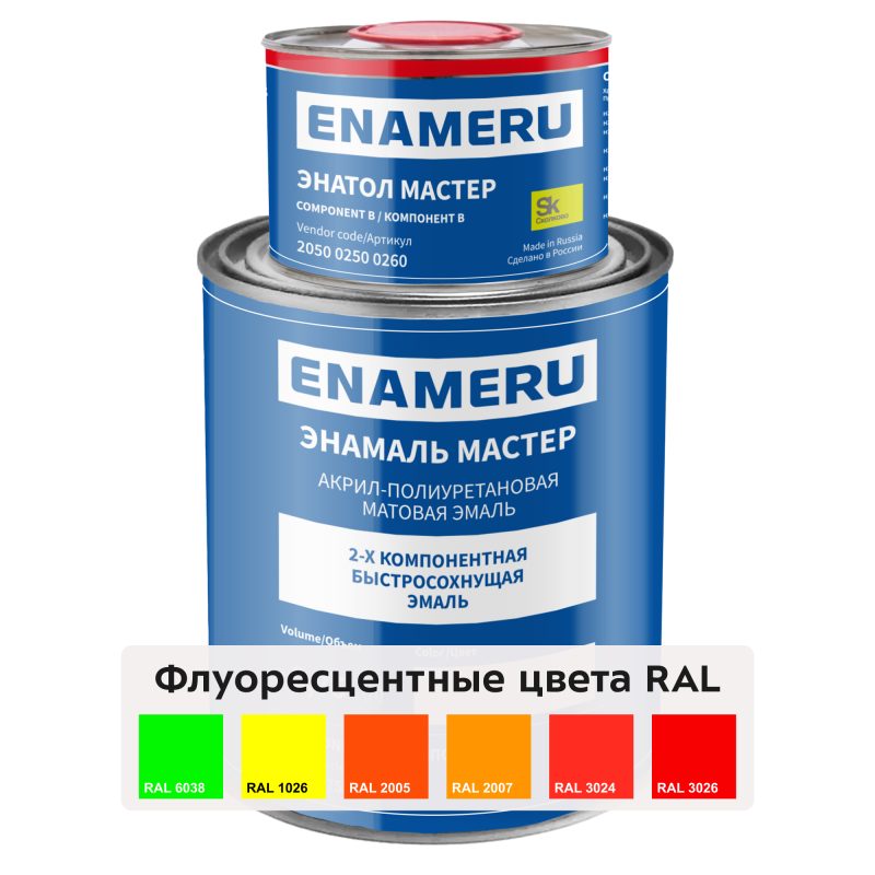 Энамеру, краска матовая 2К Энамаль Мастер, 1 кг, Флуоресцентные цвета RAL